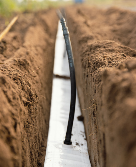 Deze slang wordt tot 20 cm diep in de grond gelegd. De aftakkingen worden met schroefdraad op de aansluitingen van de slang gemonteerd. De aansluitingen kunnen op de voor u geschikte rijafstand besteld worden.